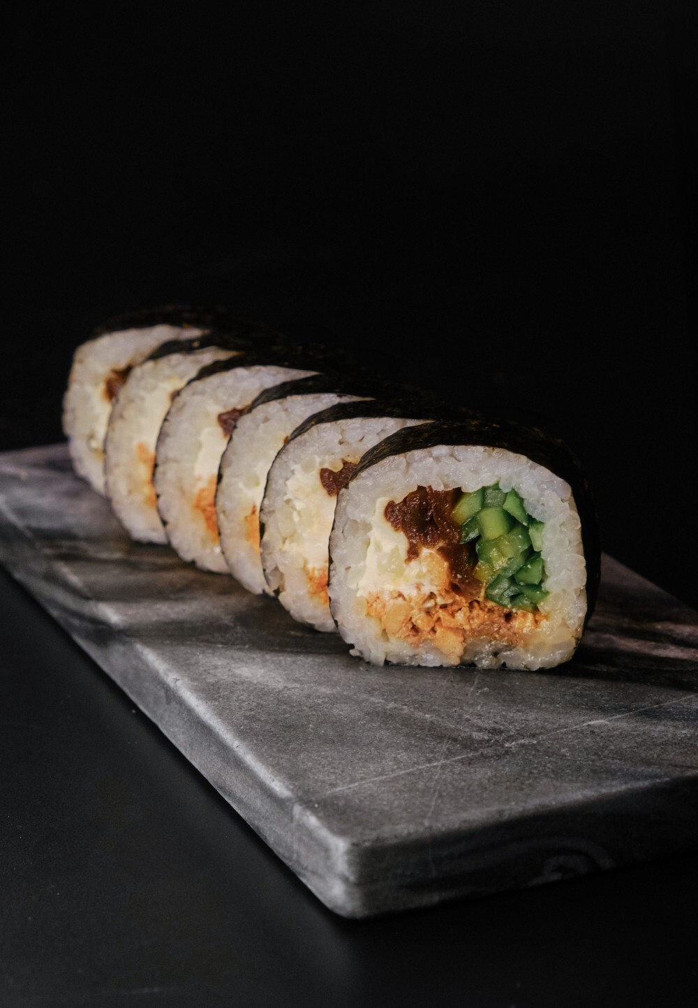 6 szt. Ryż Nori Ser Philadelphia Pieczony łosoś Ogórek Kanpyo Sos Sojowy 1 Gratis! Imbir 1 Gratis! Wasabi 1 Gratis! Pałeczki 1 Gratis!